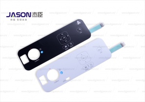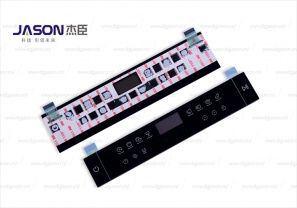 Printed circuit + button shrapnel + silicone button + face sticker