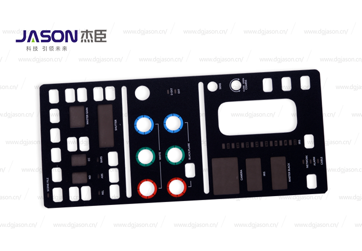 三層設(shè)計(jì),上、中、下三層導(dǎo)電膜,上、下層分別印有電路連線(xiàn)及按鍵觸點(diǎn),中間隔層上有上、下觸點(diǎn)層對(duì)應(yīng)的圓孔,隔層的作用是防止上下層電路短路。